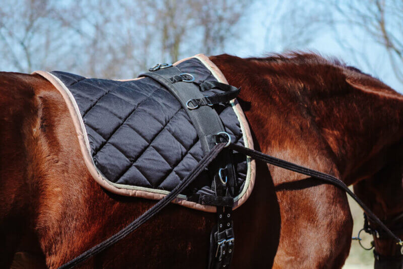 Wichtig ist außerdem, dass der Longiergurt durch eine Longierunterlage oder Schabracke weich gepolstert ist und deinem Vierbeiner gut passt. Der Widerrist sollte frei sein, wodurch du ermöglichst, dass dein Pferd jede seiner Bewegungen problemlos ausführen und den Rücken aufwölben kann. Dies gewährleistet eine korrekte Gymnastizierung deines Vierbeiners. Für die Arbeit mit der Doppellonge ist ein Gurt und/oder eine Longierunterlage in hoher Qualität also unerlässlich.