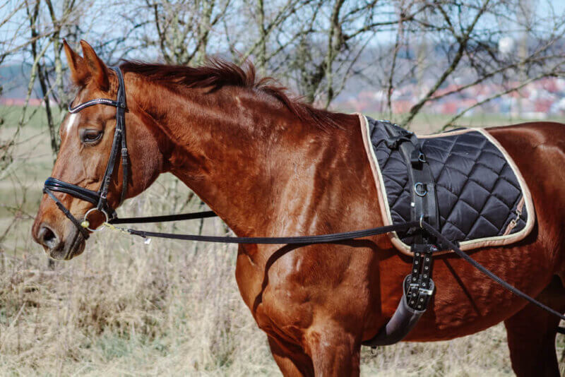 Für die Arbeit an der Doppellonge mit deinem Pferd benötigst du ebenso wie beim „normalen“ Longieren bestimmte Ausrüstungsgegenstände. Neben Reithandschuhen und festem Schuhwerk (wie z.B. Reitstiefeletten) für dich ist es sinnvoll, dein Pferd mit passendem Equipment auszustatten. Außerdem solltest du dir eine Longierpeitsche zu Hilfe nehmen, um deinen Vierbeiner aus der Ferne zielgerichtet korrigieren zu können.
