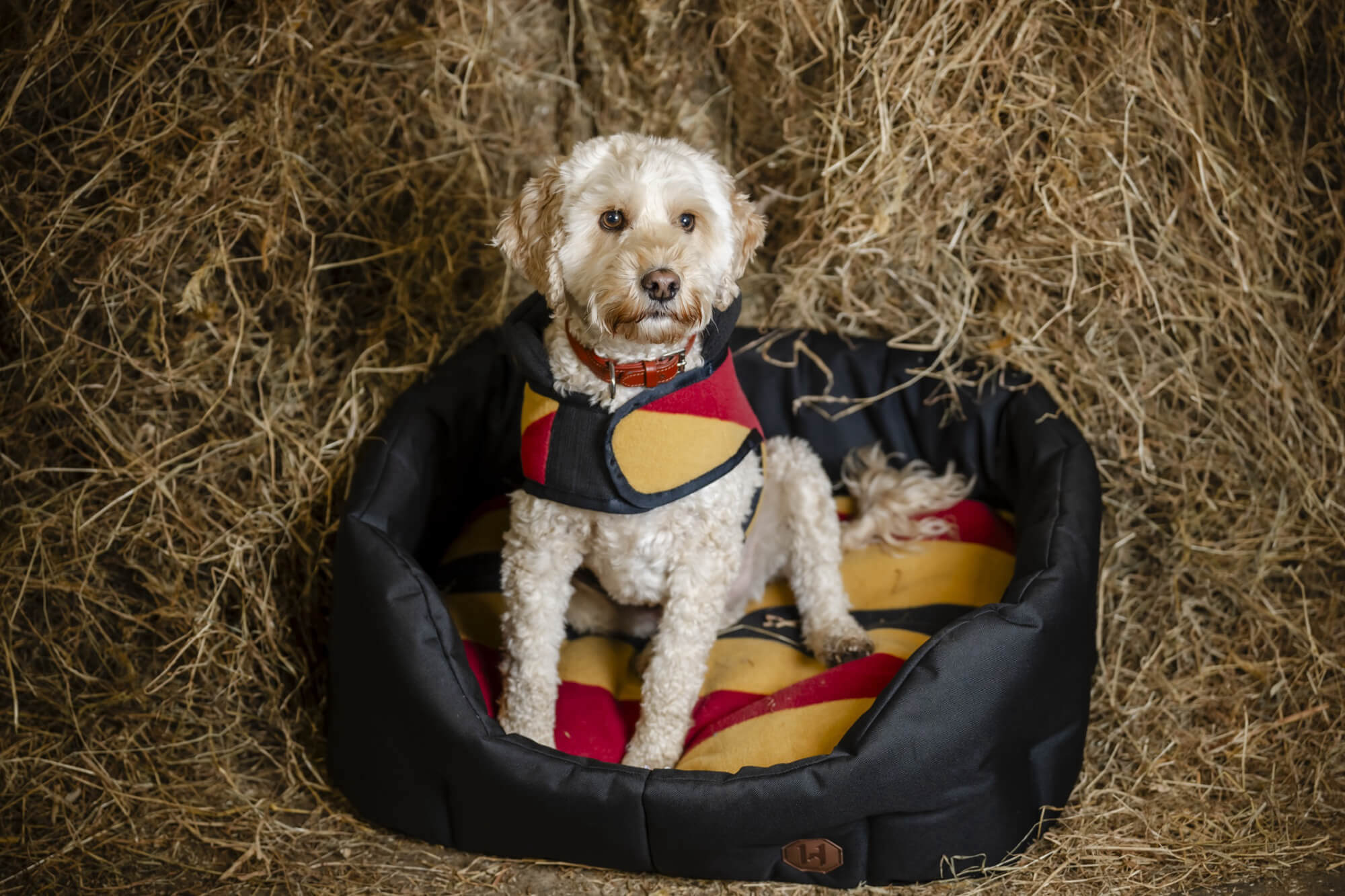 - luxuriöse Lederdetails an der Öffnung des Geschirrs und einem Kunstlederaufnäher mit Markenzeichen