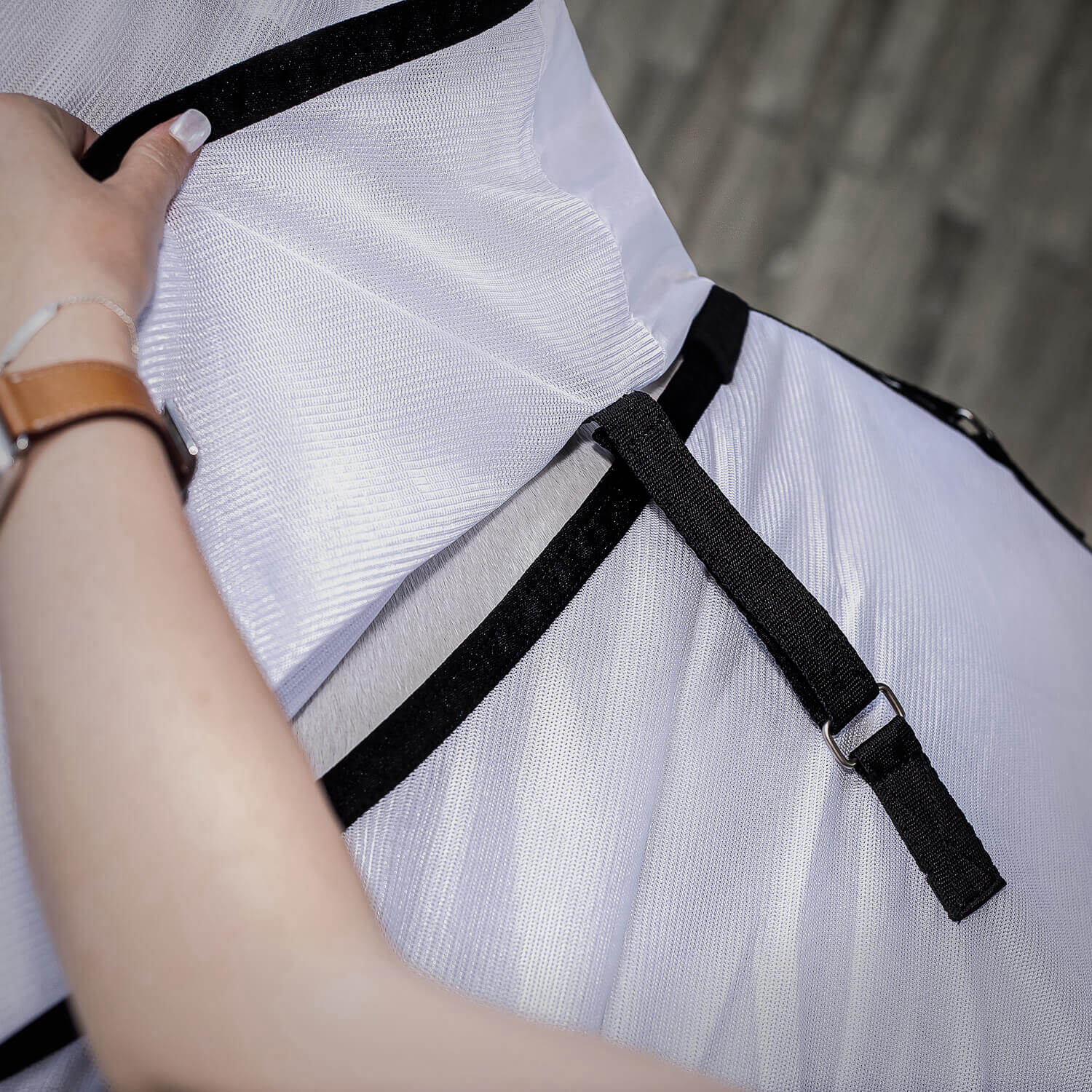 - robuste Fliegendecke aus Mesh mit abnehmbarem Halsteil