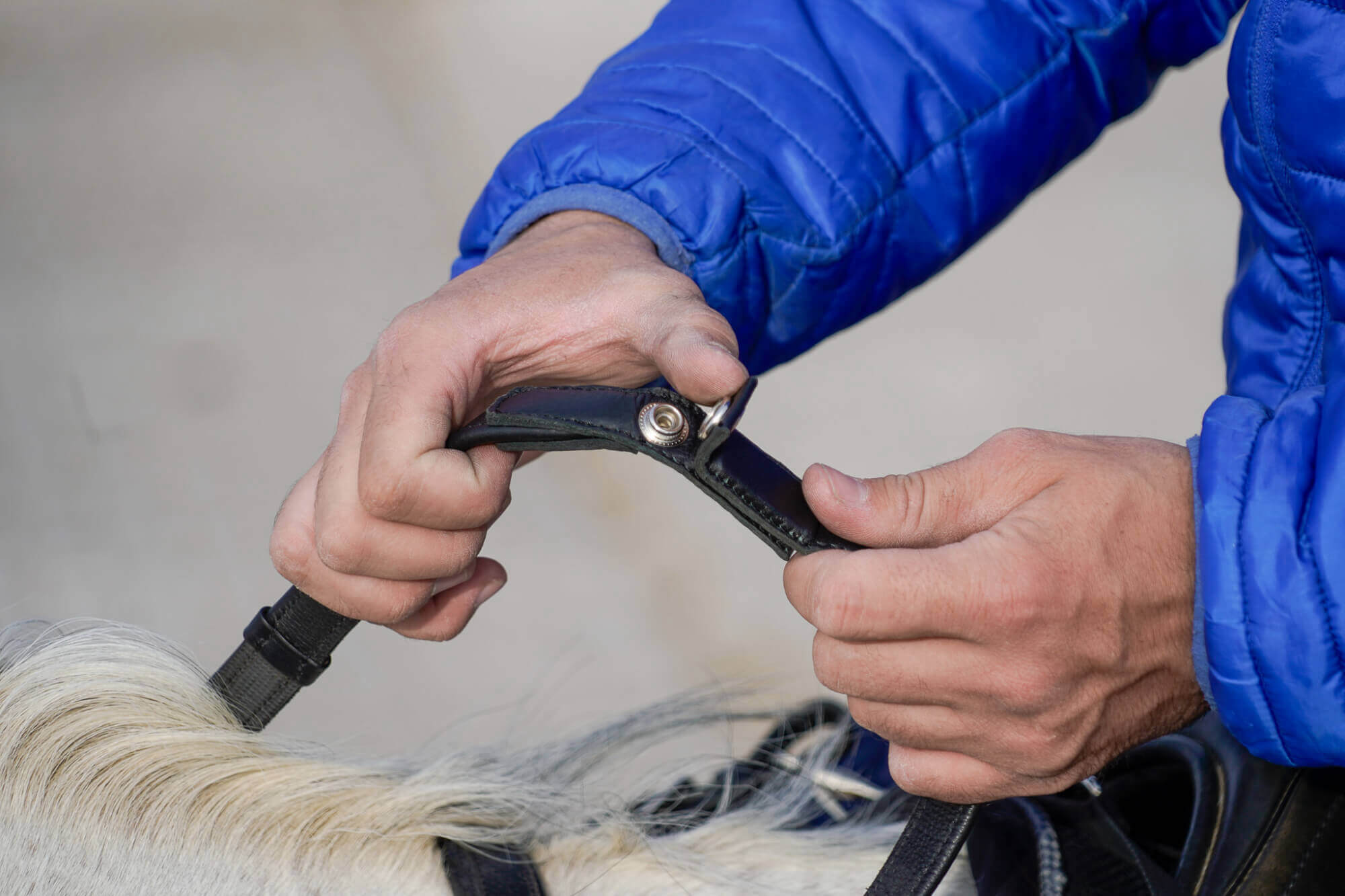 - robuste Gurtzügel mit Lederstegen für einen rutschfesten Halt in der Hand