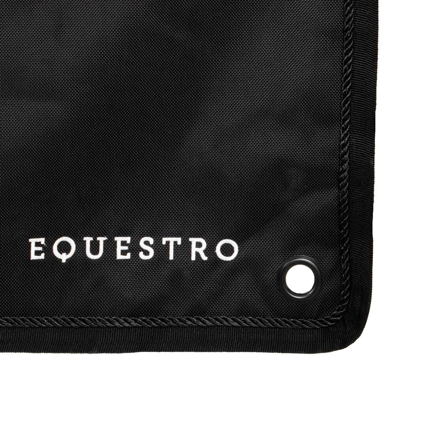 - Equestro-Logo auf der oberen, Equestro-Schriftzug auf der unteren Seite eingestickt