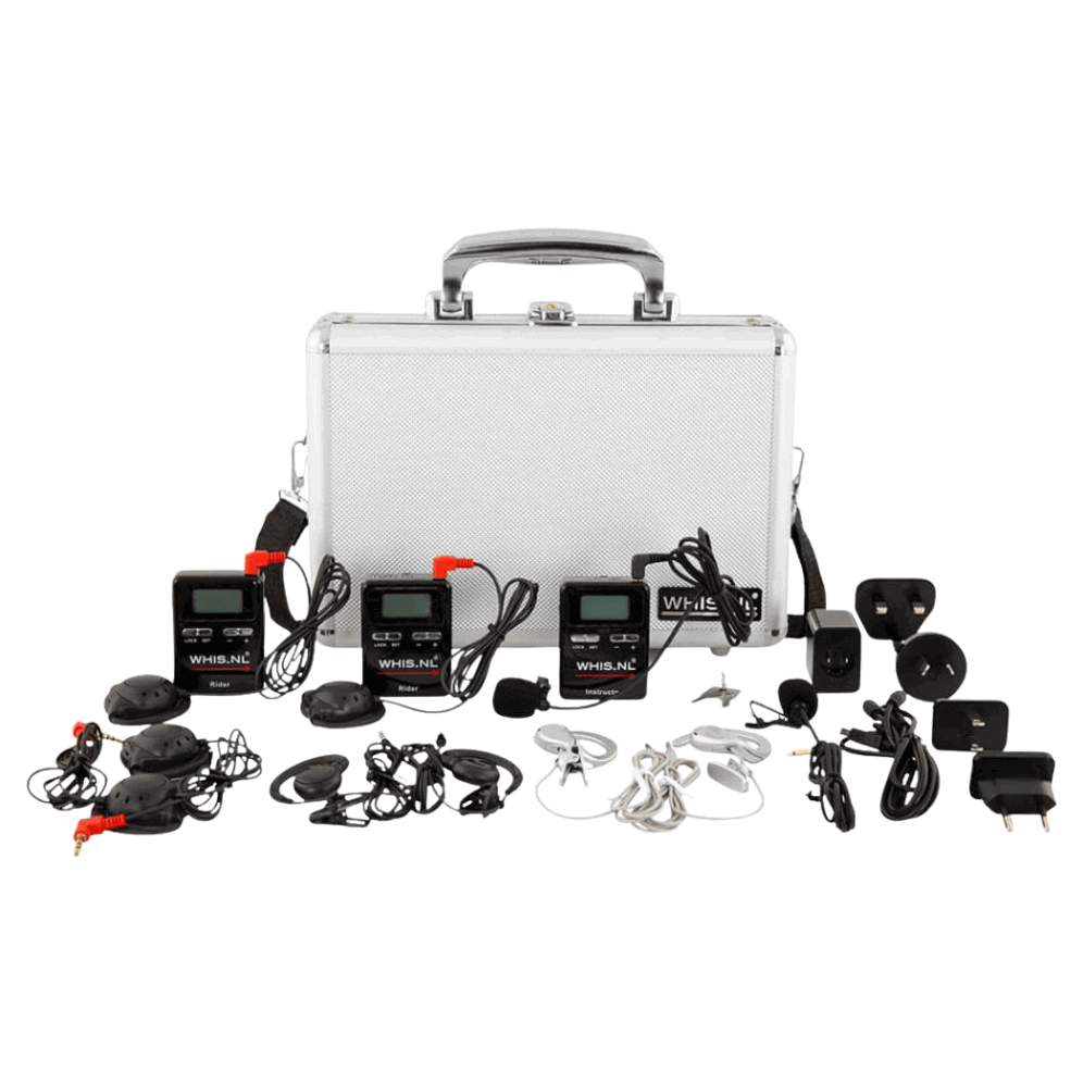 • kabelloses, leichtes und kompaktes Anweisungssystem für 1 Trainer und 2 Reiter