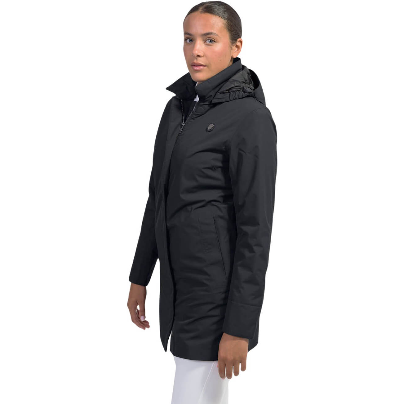 Mantel Damen Delia, Regenmantel, Reitmantel, mit abnehmbarer Kapuze, black