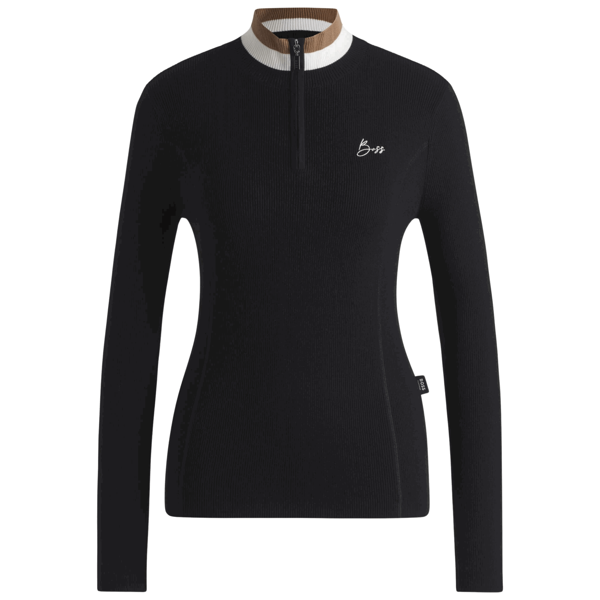 - der Stehkragen ist in BOSS Signature Farben gestrickt