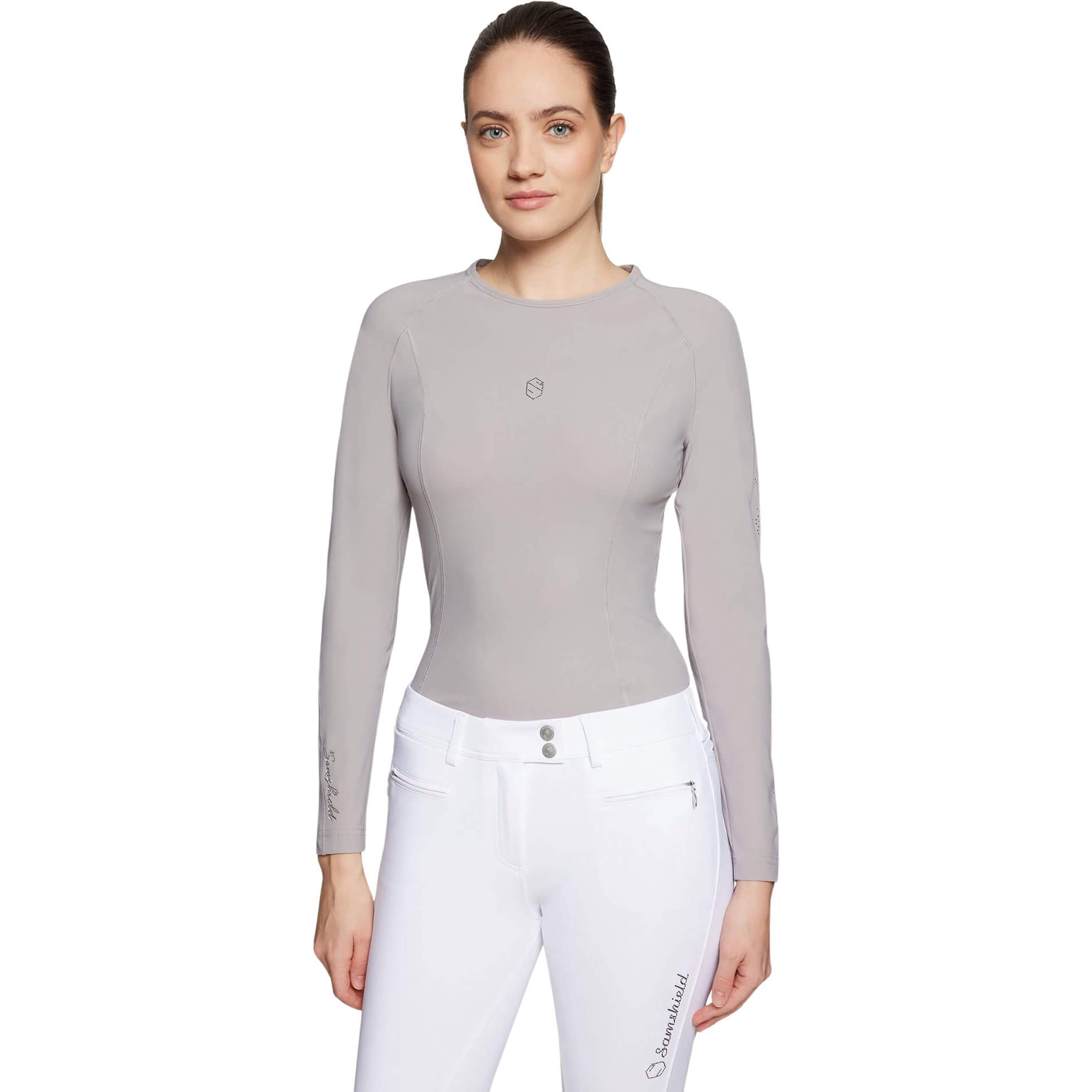 - Swarovski-Samshield-Wappen auf der Brust und Kristalllogo am Ärmel